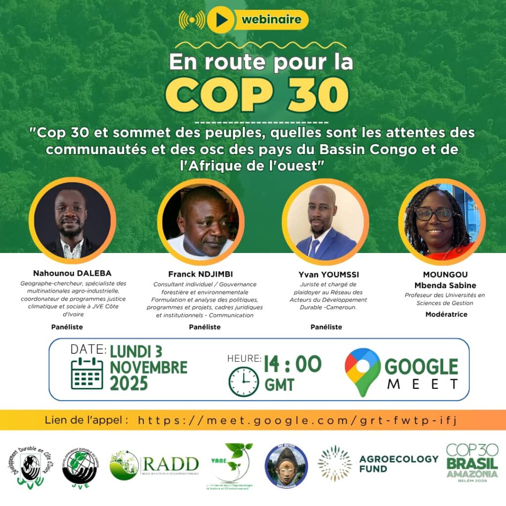 Réseau des Acteurs du Développement Durable est une association de droits Camerounais. Recepissé de déclaration d’association N° 000223/RDA/J06. Nous œuvrons pour la justice économique, sociale, environnementale et climatique. Notre vision c’est de promouvoir toutes les alternatives de développement durable inclusif.